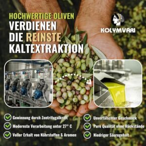 Erleben Sie das Aroma und die Qualität des Kolymvari Extra Nativ Olivenöls – aus Koroneiki Oliven Kretas mit geschützter Ursprungsbezeichnung (g.U.)